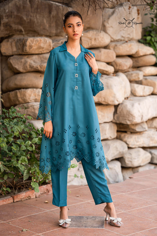 Krepe Kari Ko-ords Set Short ( Zinc Blue)