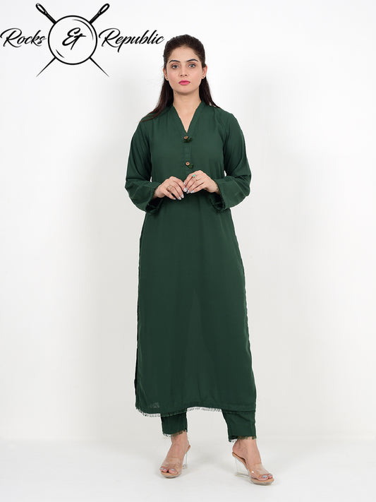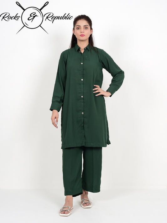 Viscous Crepe Georgette Solid Co-ord Set Long (Bottle Green)