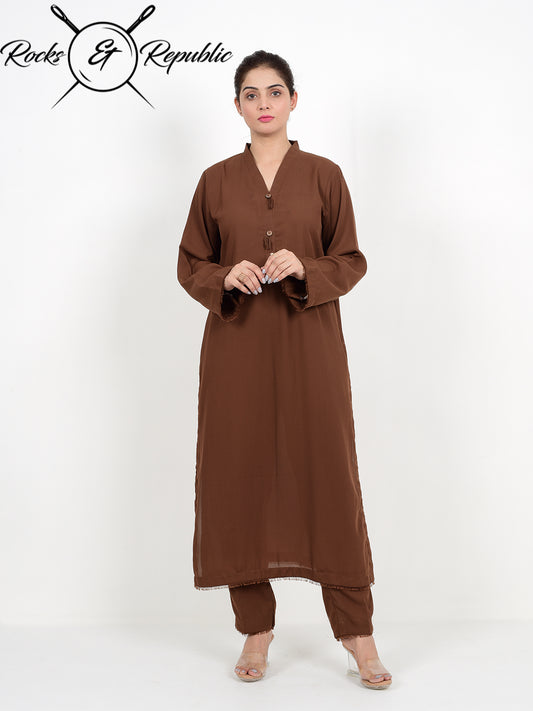 Viscous Crepe Georgette Solid Co-ord Set long (Chocolate Brown)