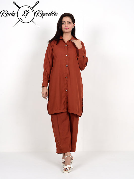 Viscous Crepe Georgette Solid Co-ord Set Short (Rust)
