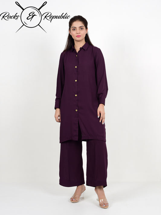 Viscous Crepe Georgette Solid Co-ord Set Short (Purple)