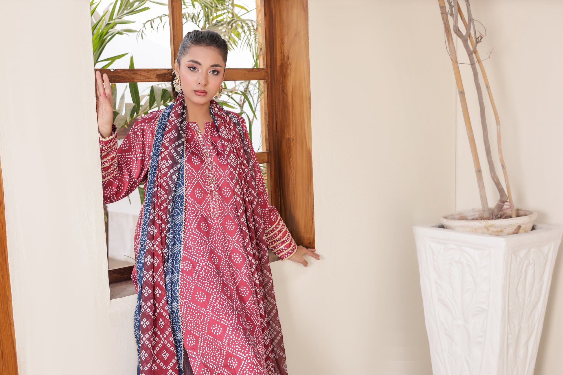Embrace the perfect blend of traditional soul and contemporary style with our Midnight Ruby ensemble from the Chunri Collection. This stunning deep red and navy blue outfit is designed for the modern woman who values artisanal craftsmanship and luxury.