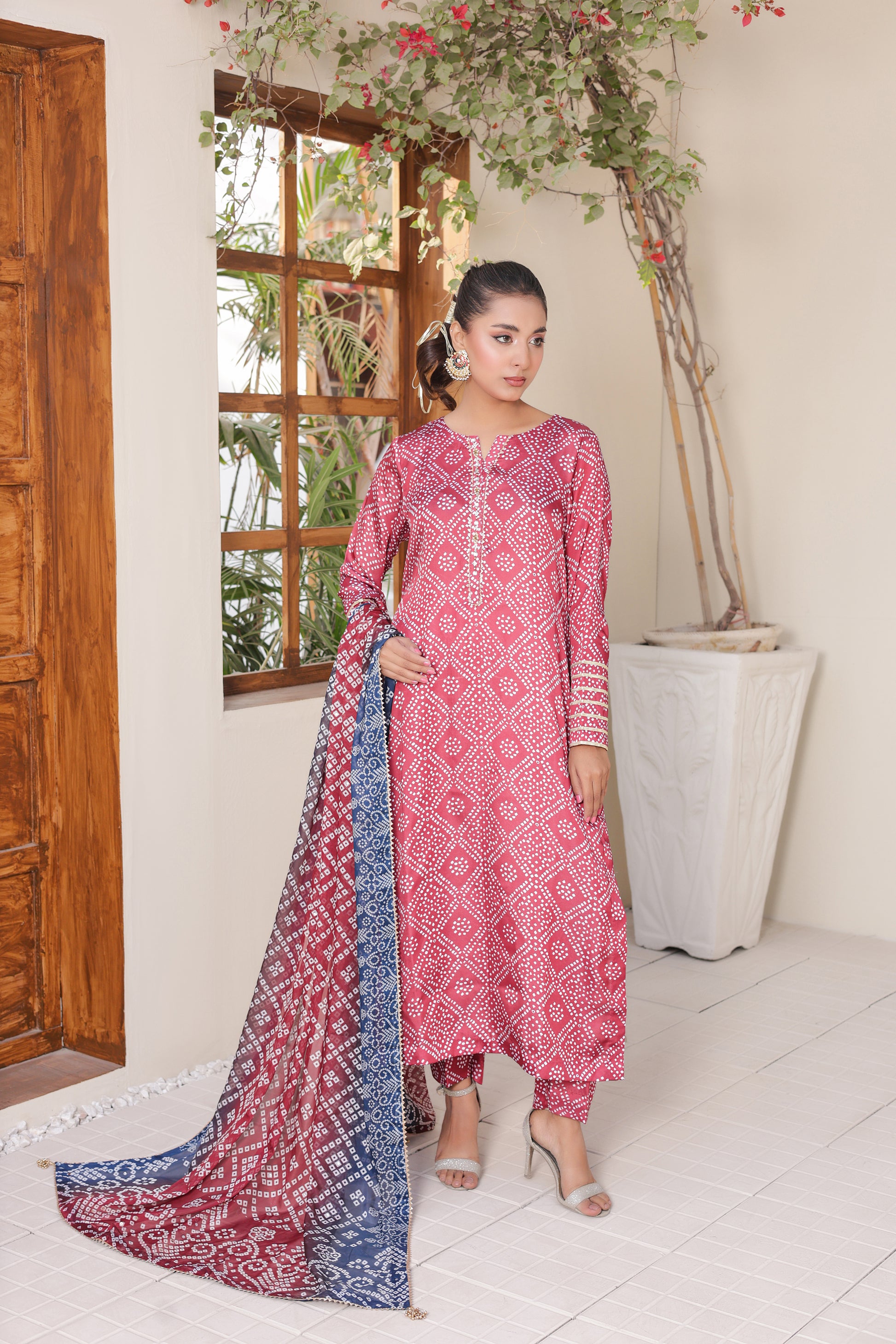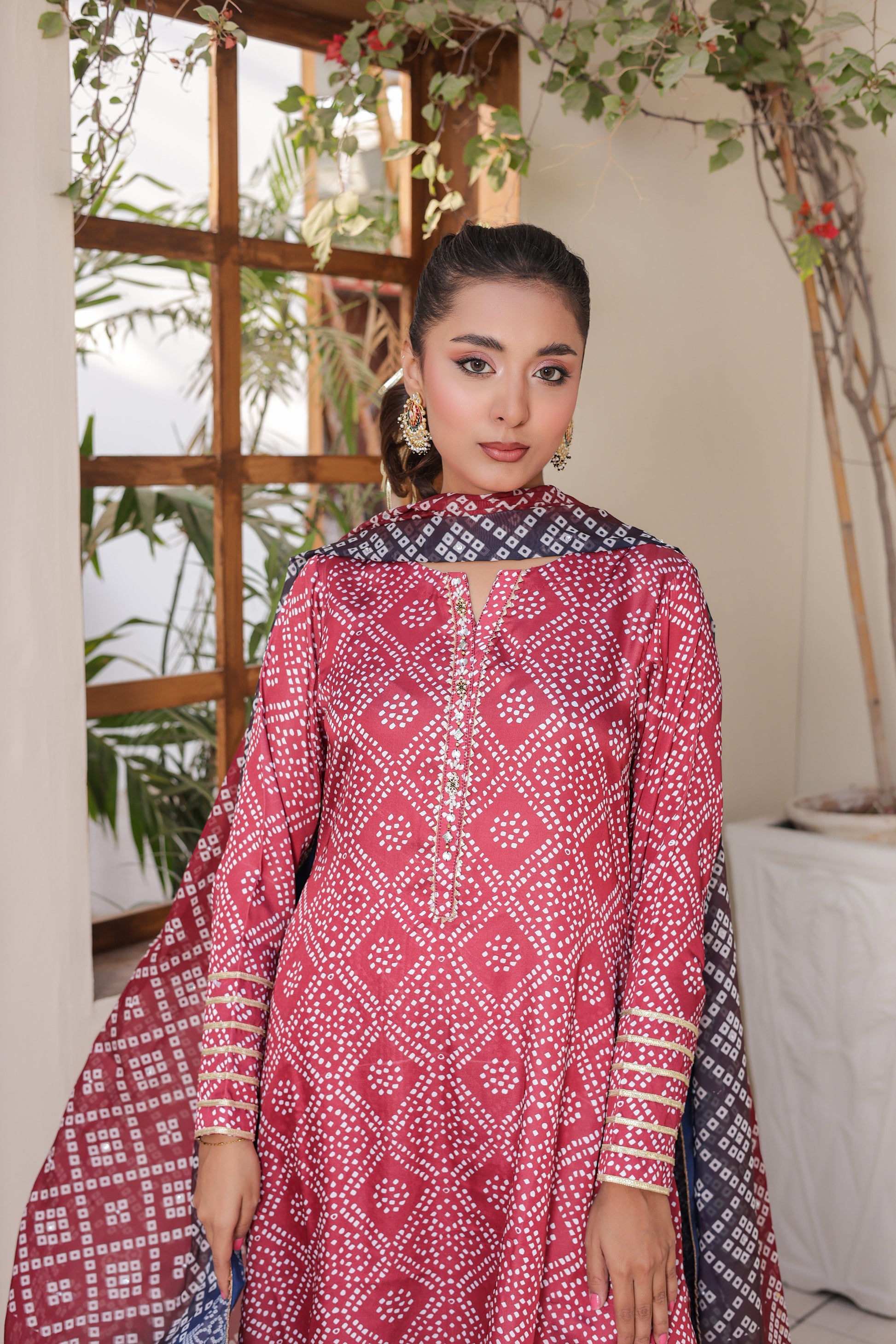 • Complete Look: This is a 3-piece set including the shirt, matching printed pants, and dupatta.
