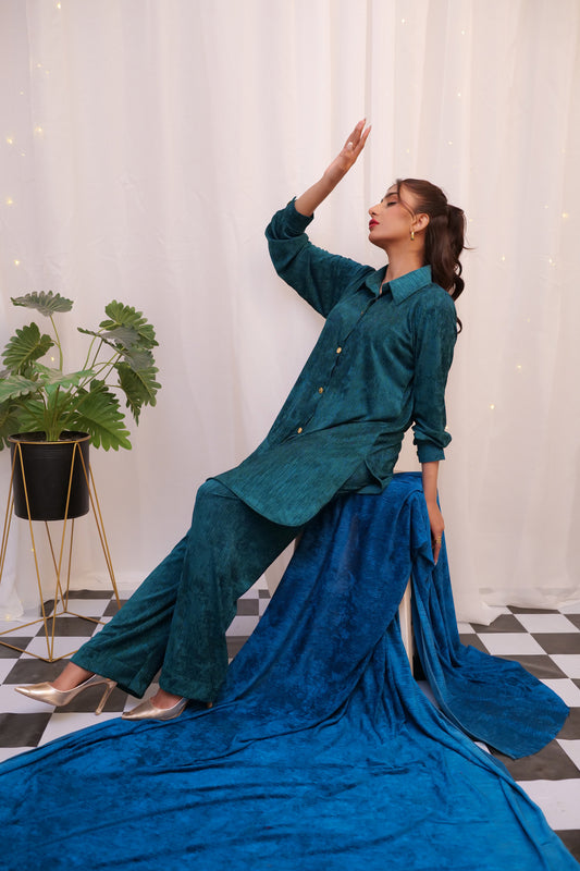 Blended Cotton Solid Co-ord Set Long ( navy Blue )