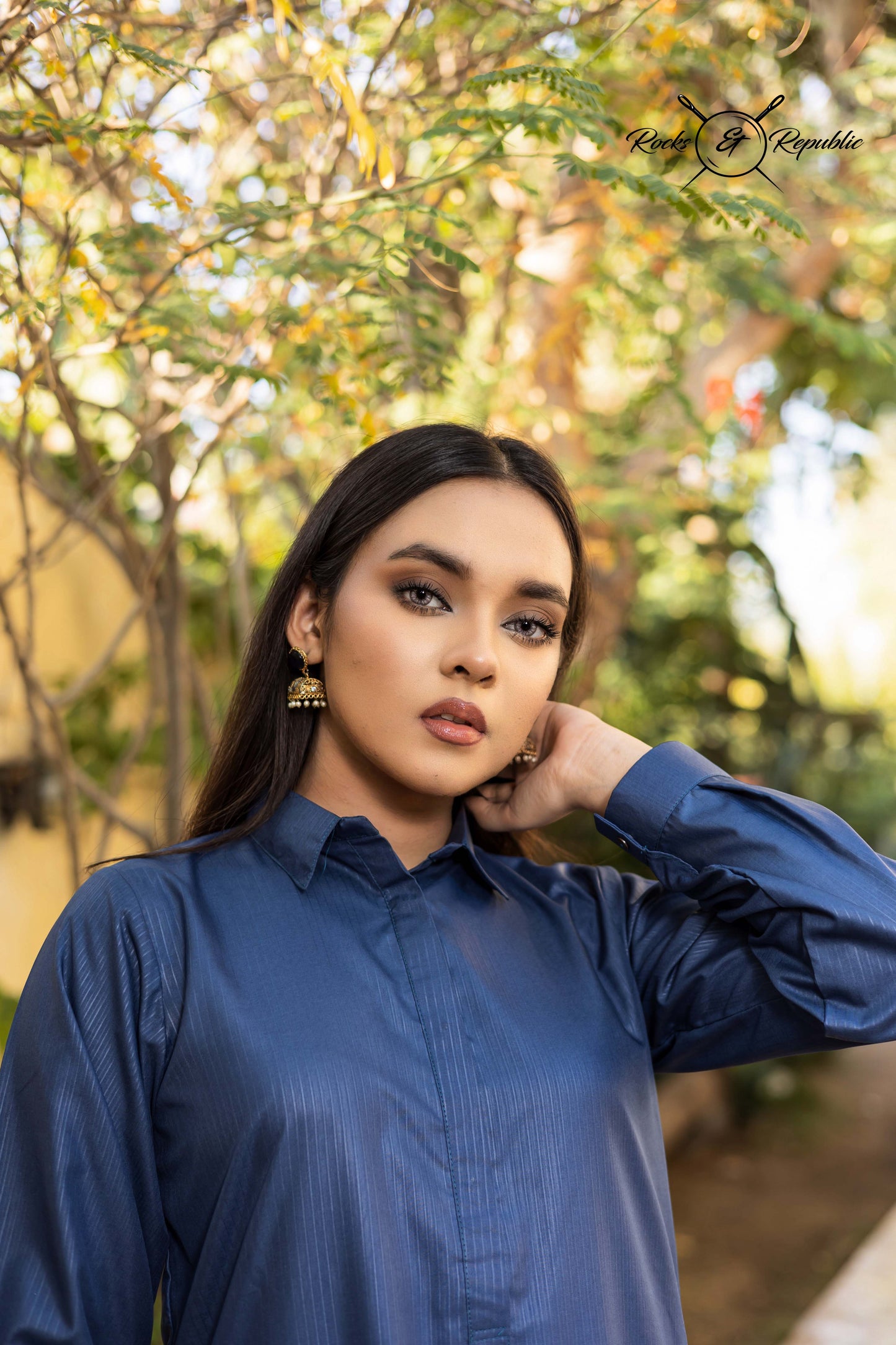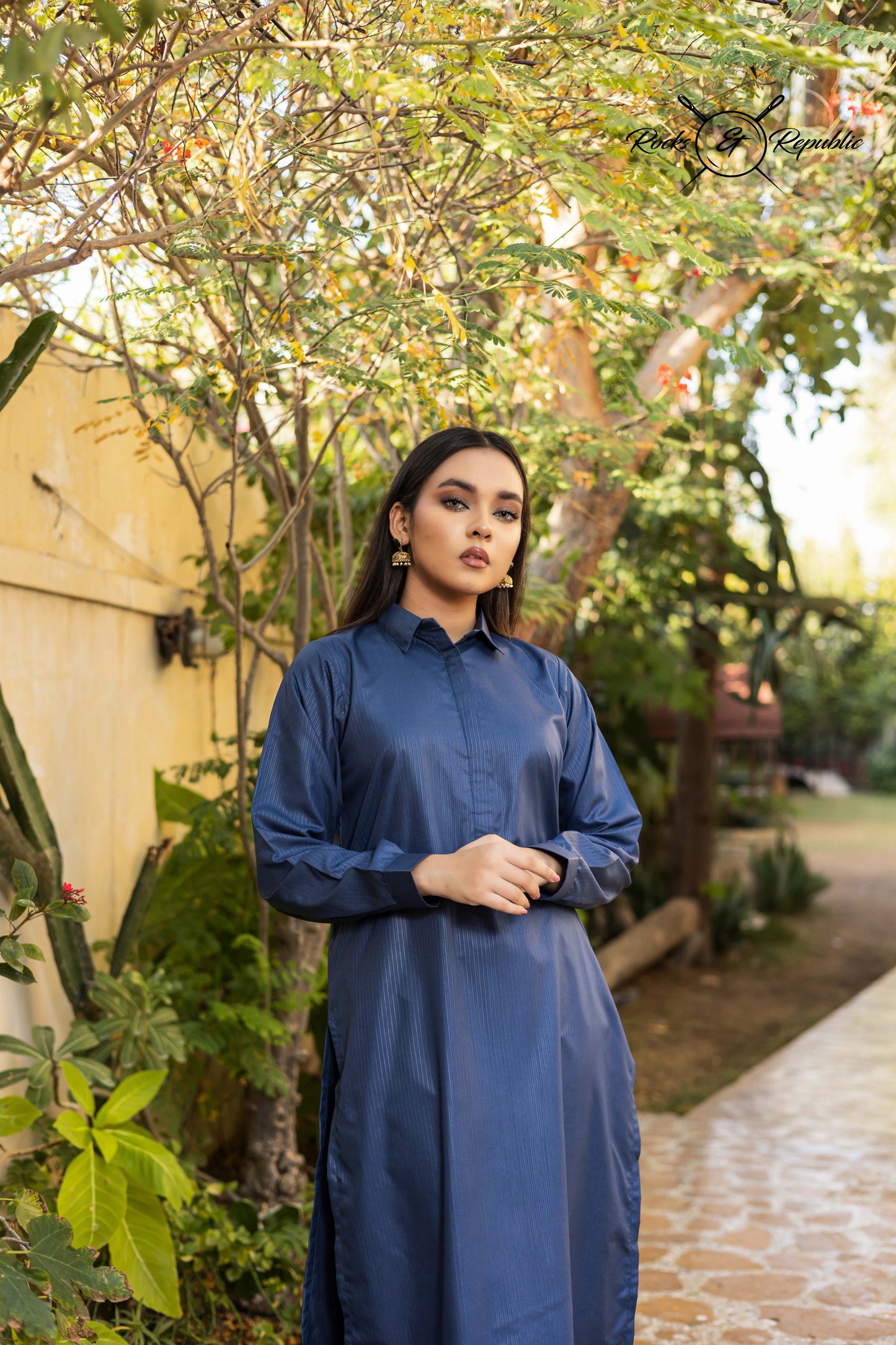 Blended Cotton Solid Co-ord Set Long ( navy Blue )