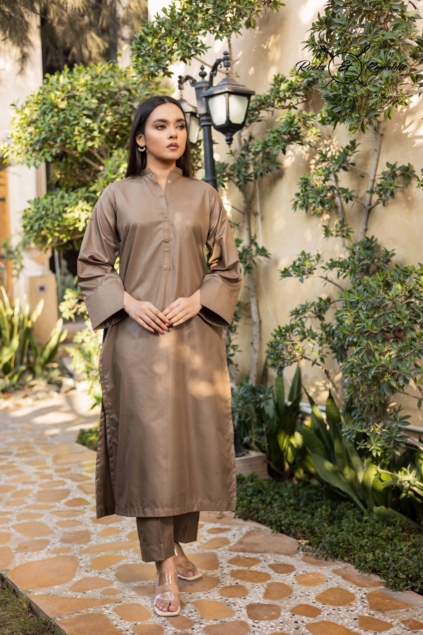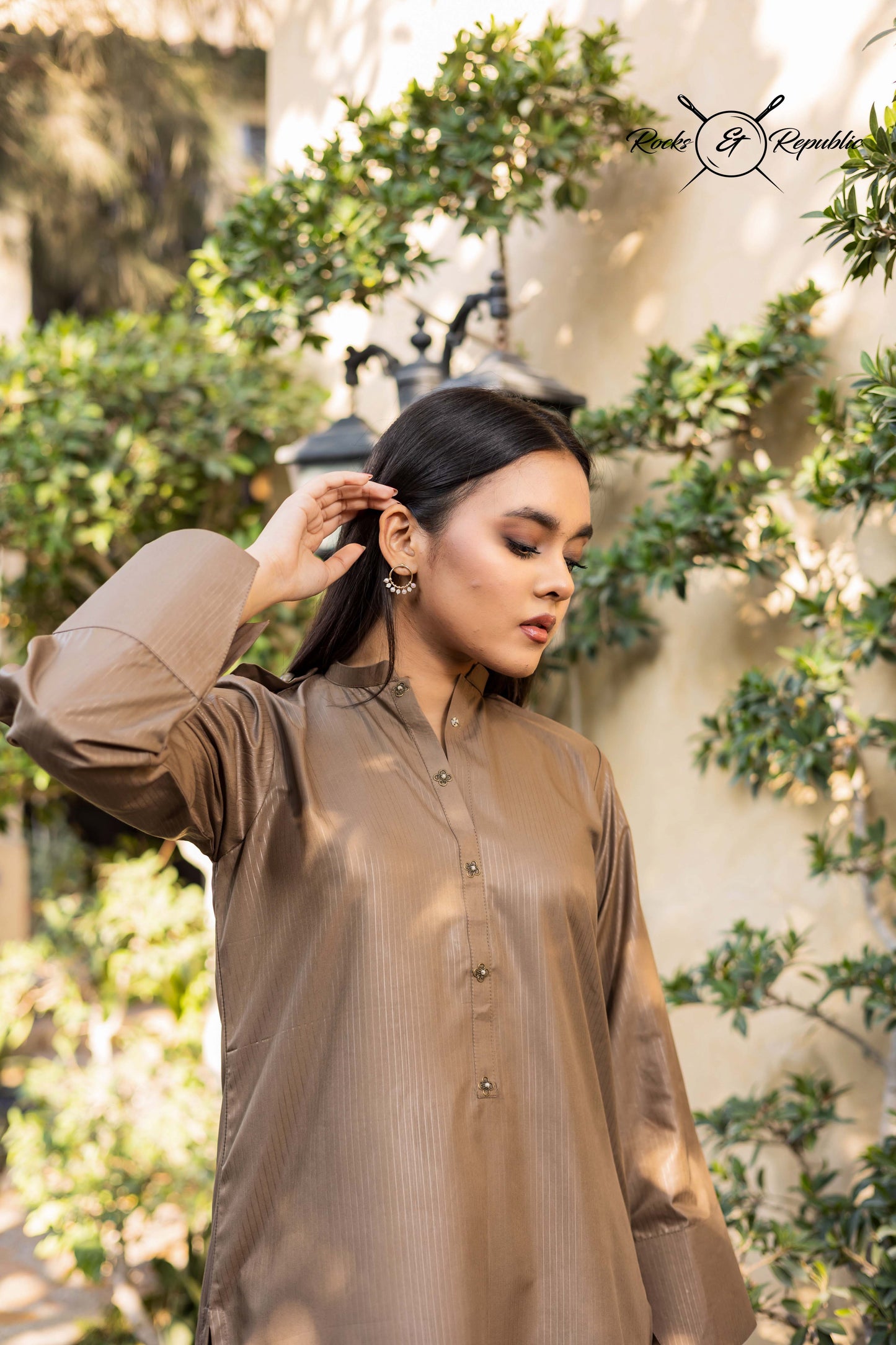 Blended Cotton Solid Co-ord Set Long ( Sand Color )