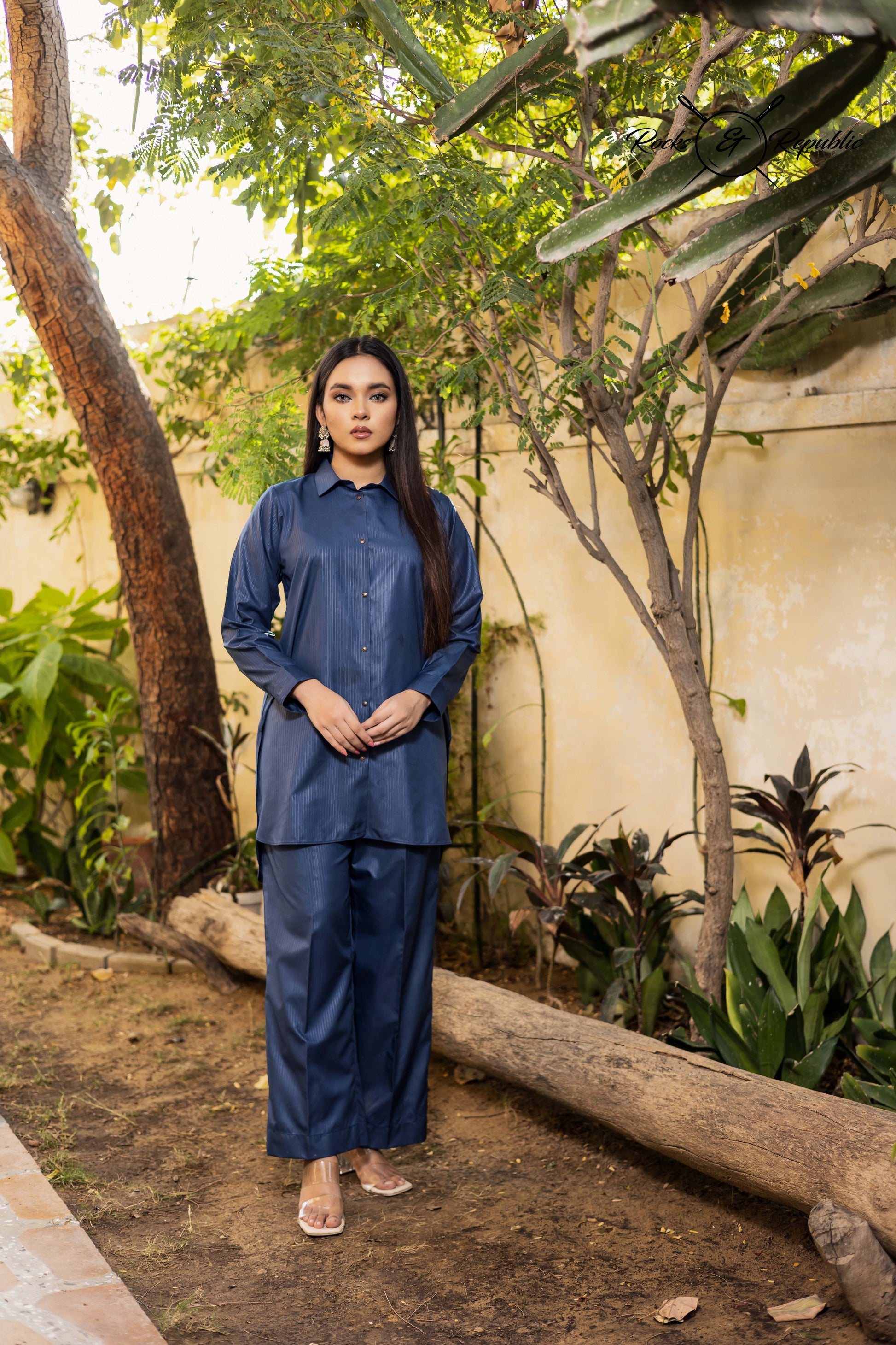 Blended Cotton Solid Co-ord Set Short (Navy Blue)
