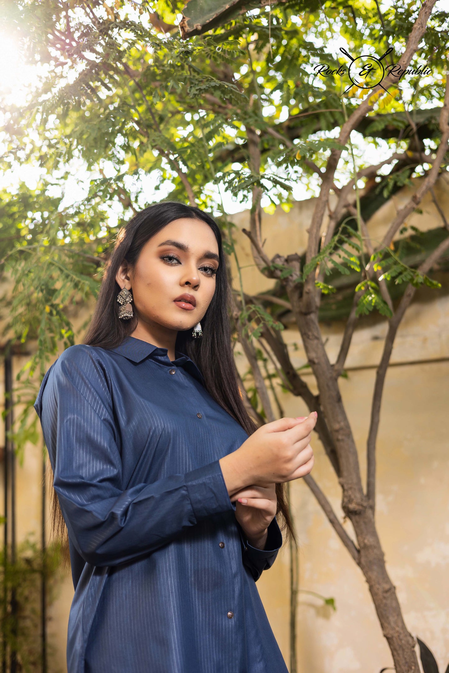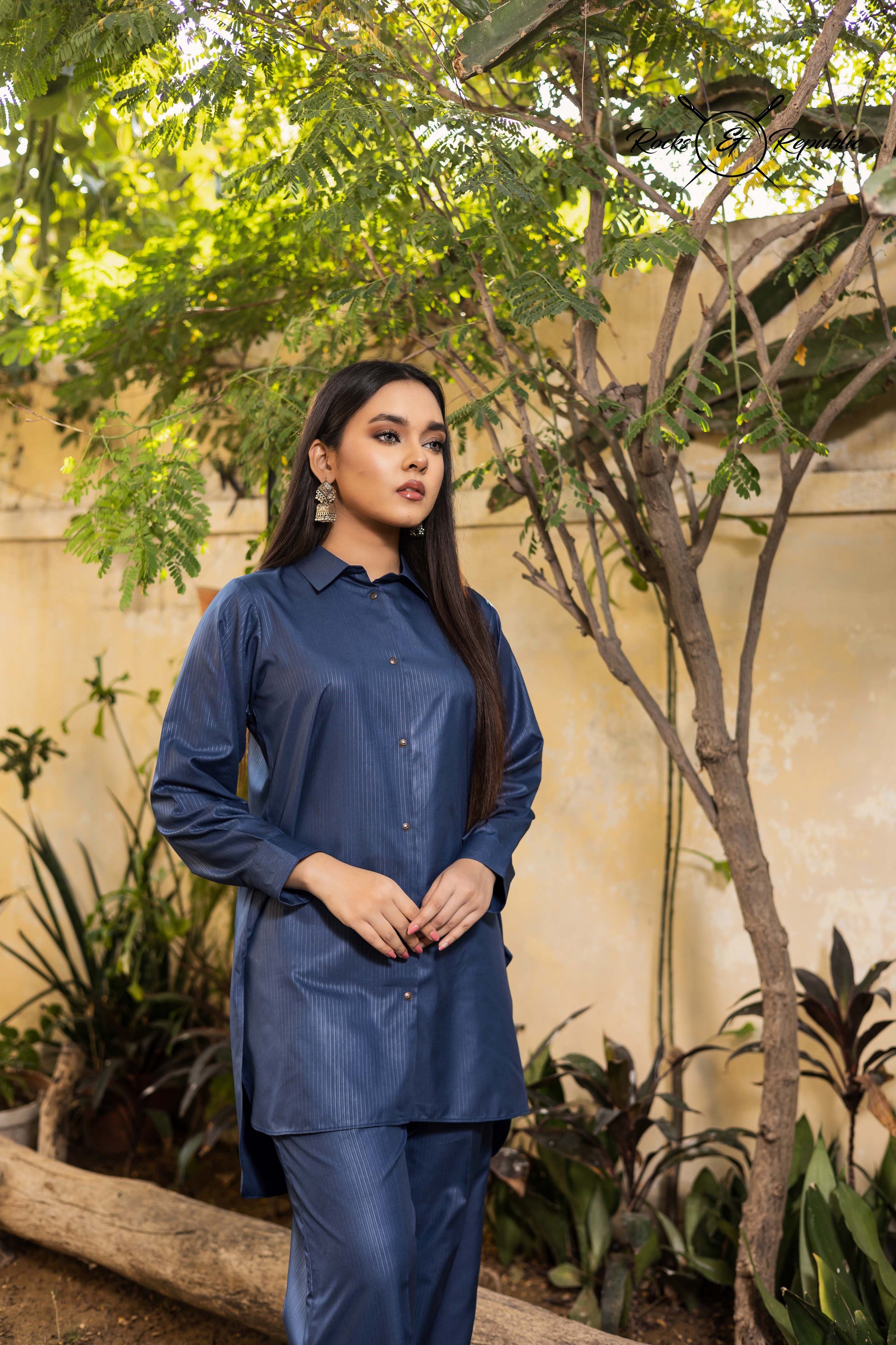 Cut : 2 pieces blended Cotton short length button down style shirt collar neck style , Enclosed with beautiful metal toned buttons. With Straight Wide pants. Sleeves with cuffs