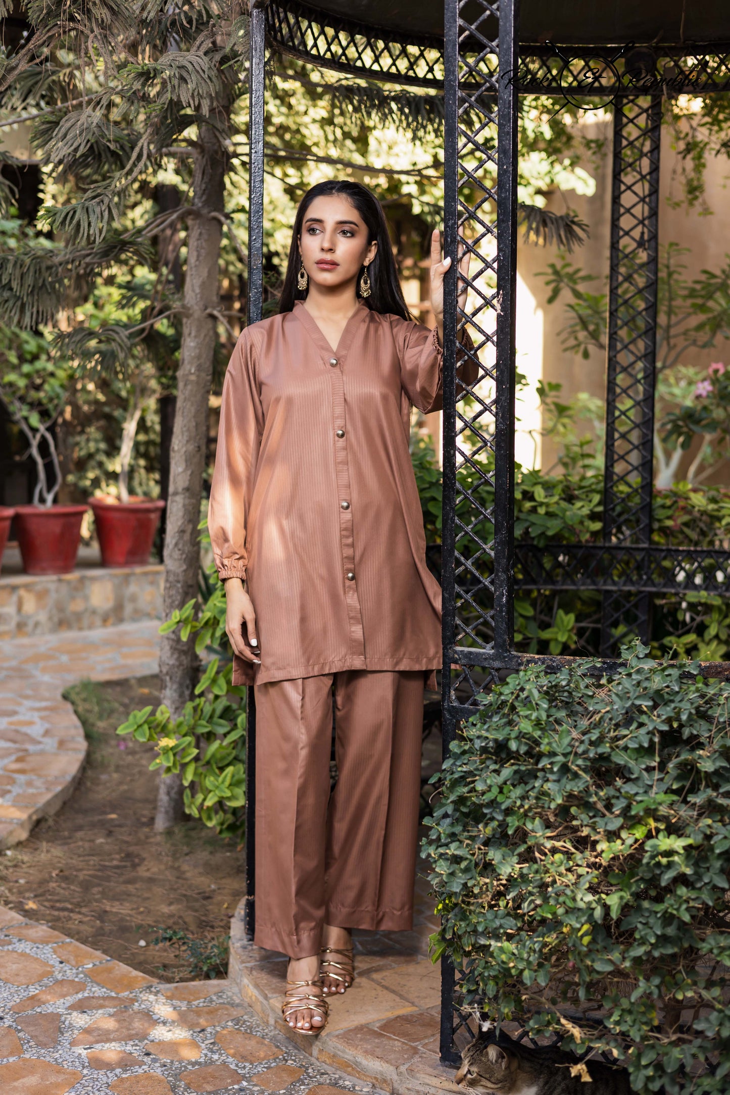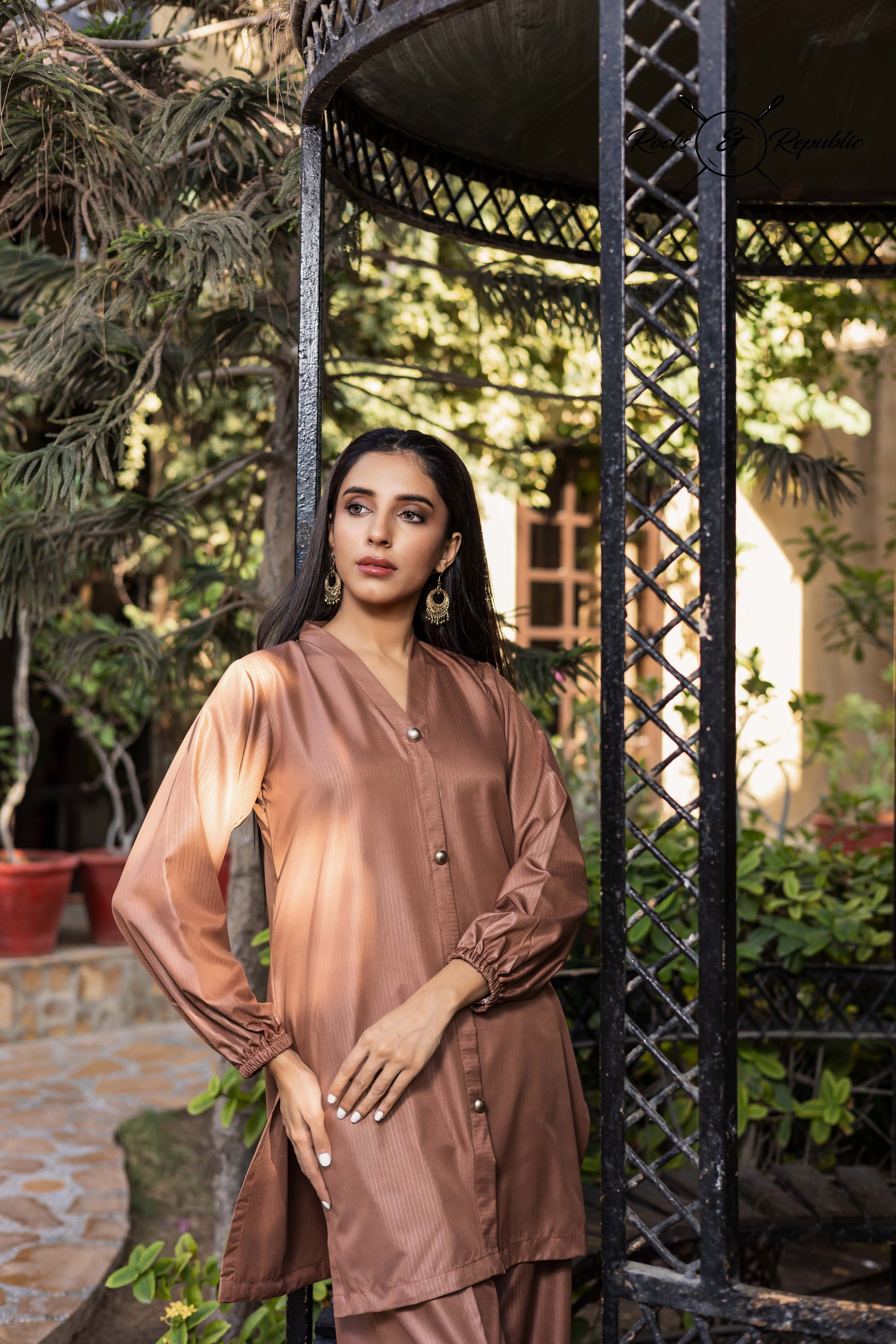 Blended Cotton Solid Co-ord Set Short (Rose Gold)
