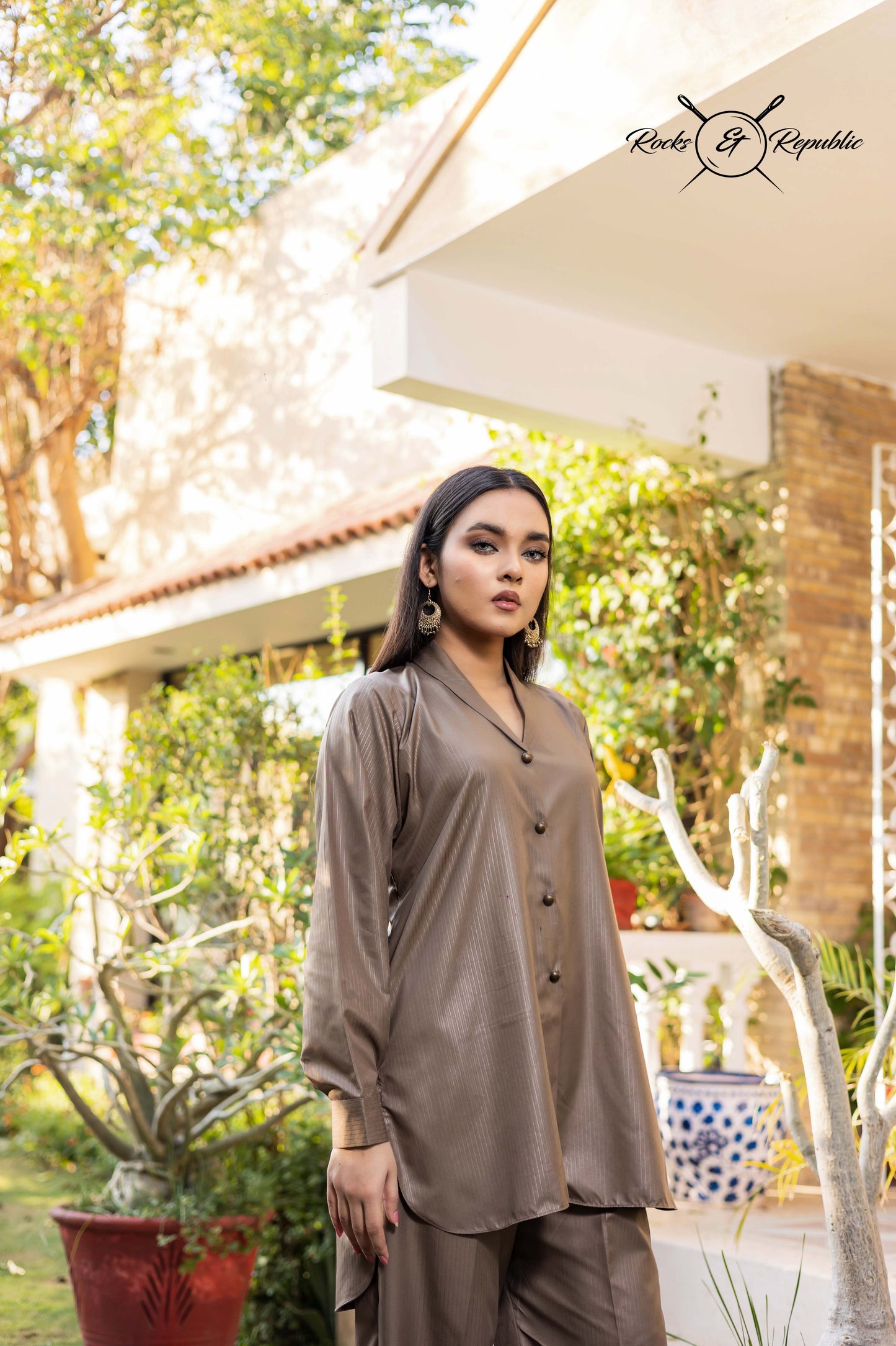 Blended Cotton Solid Co-ord Set Short (Sand Color)