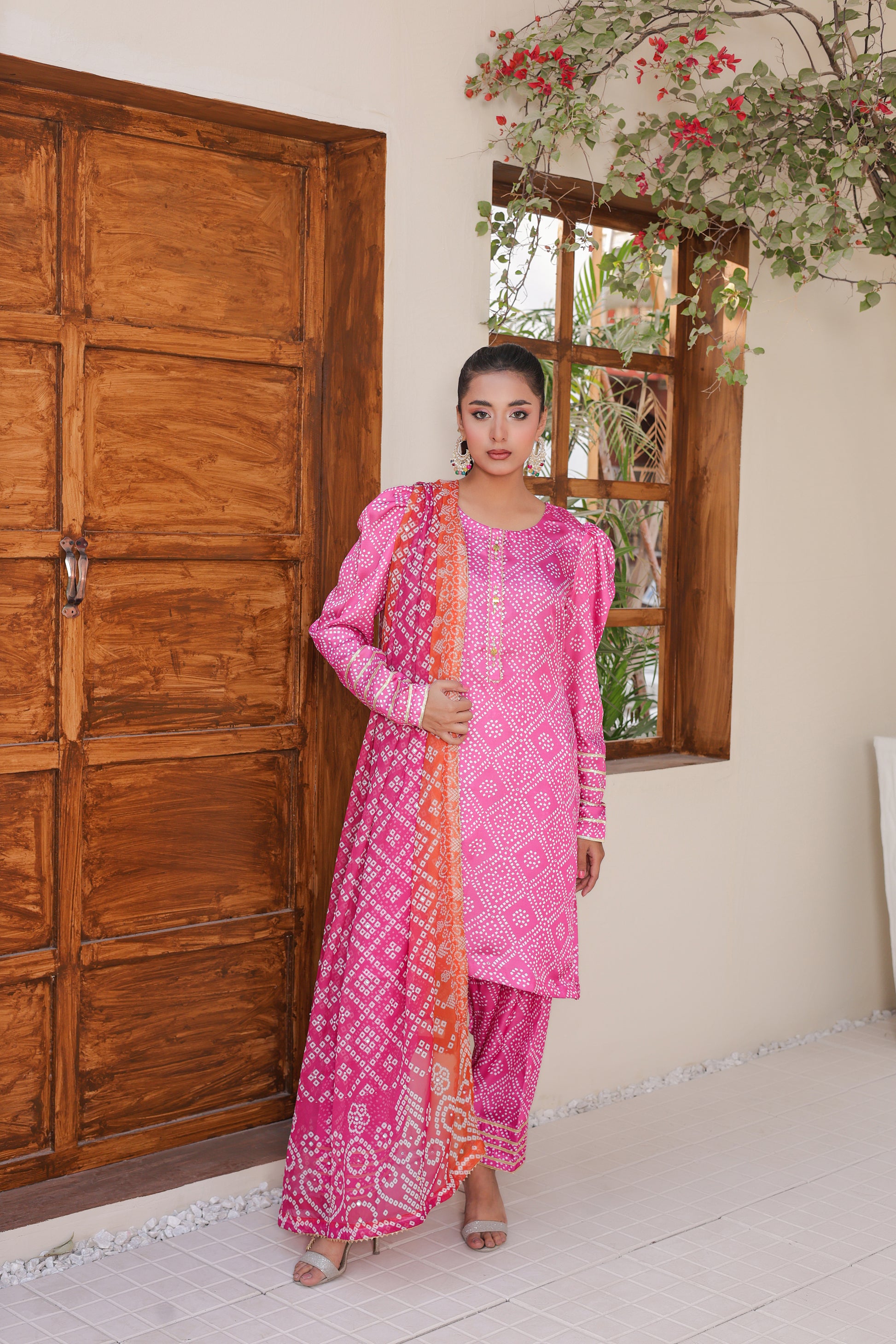 Infuse your festive wardrobe with the radiant energy of our Rose Quartz 3-piece suit. Part of the exclusive Chunri Collection, this outfit combines a high-fashion silhouette with the timeless appeal of traditional digital prints, making it an essential piece for any celebration.