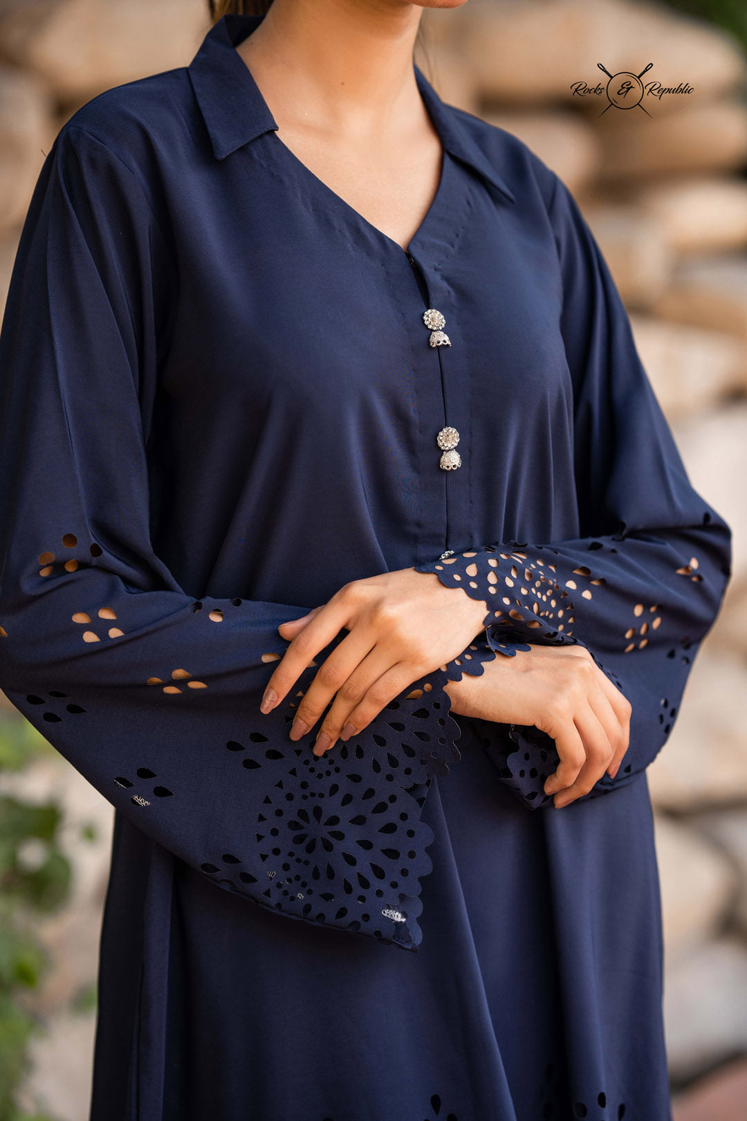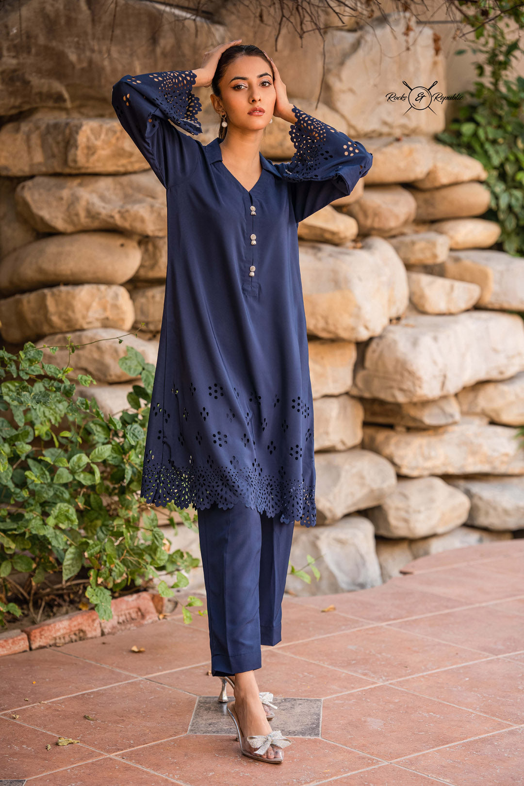 Krepe Kari Ko-ords Set Short (Navy Blue)