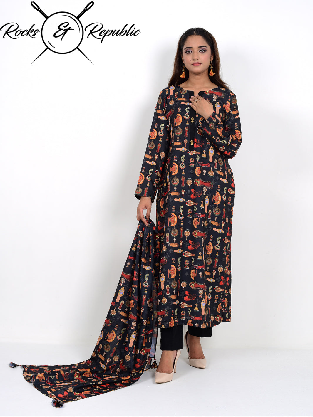 Kurta : long length Kurta embellished with jhumka Buttons.
